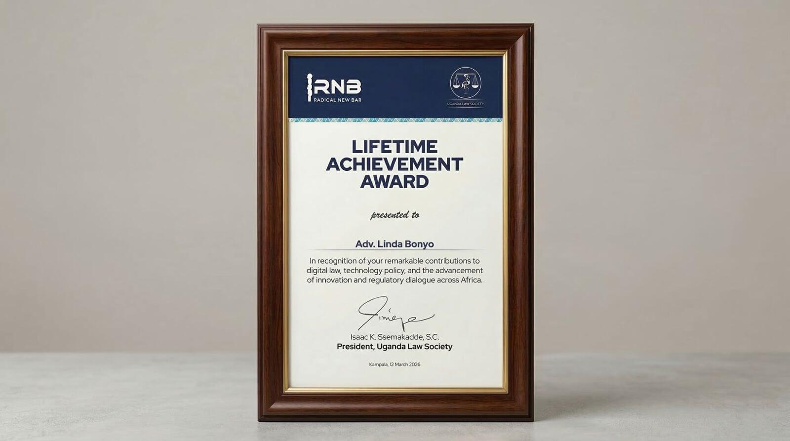 We are absolutely overjoyed to announce that our visionary Founder and CEO, Linda Bonyo, has been presented with a distinguished Lifetime Achievement Award by the Uganda Law Society.